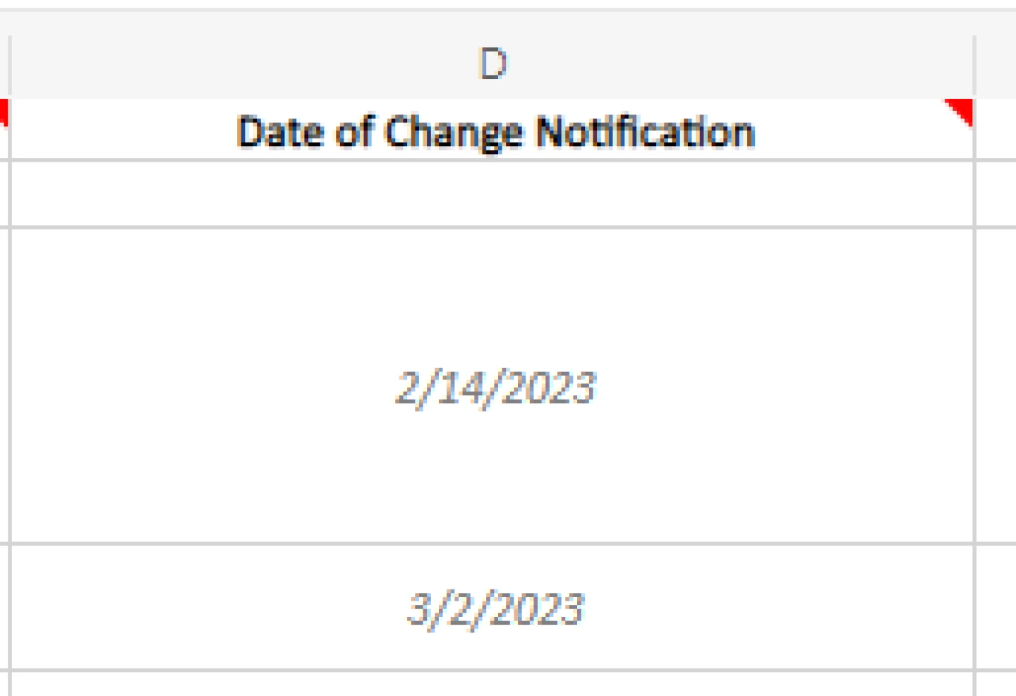 Date of Change Notification – Date Stakeholders Were Notified of Upcoming Change