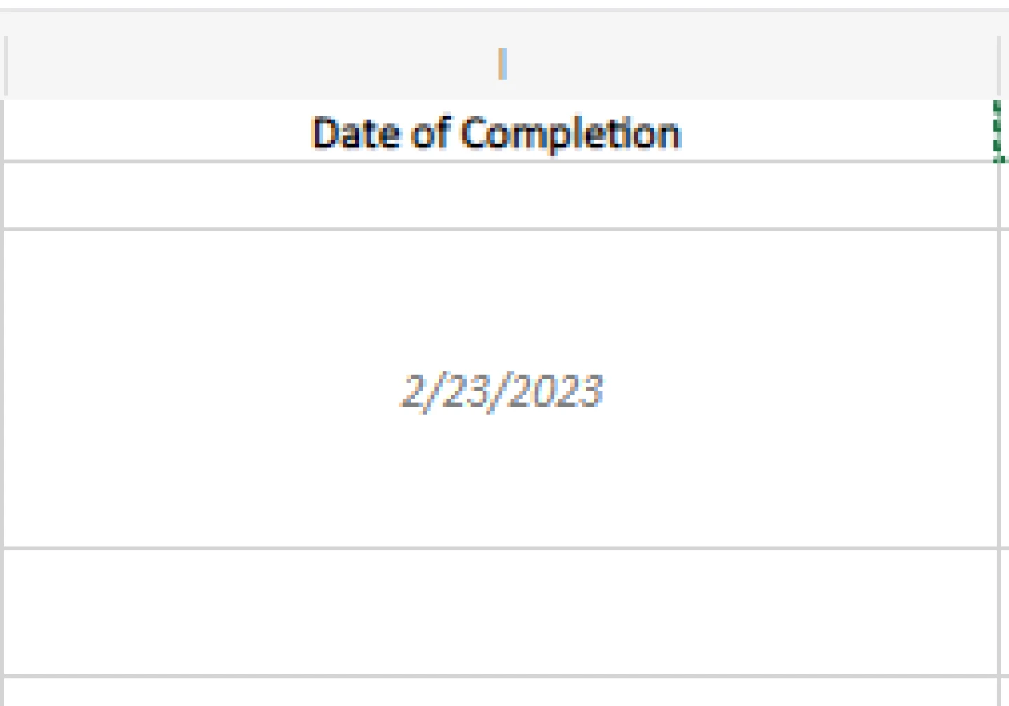 This is the date of completion of the change. Not the date of the change being pushed to systems. Not the date that all changes are implemented. This is the day that the changes are implemented, operational testing complete, results of change are provided to concerned parties, and the environment is in a stable status. If you are required to collect evidence for regulatory or business compliance, that needs to be completed before the change is considered to be complete. In the example below, the second row for Date of Completion is blank due to the change failing in testing.